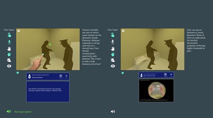 - Characters: The characters include an actual officer trainee, a virtual officer trainee, and an alcohol-intoxicated prisoner
